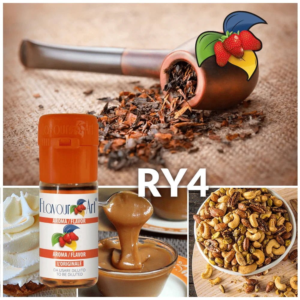 Tο RY4 είναι πασίγνωστο για τα μεγάλα σύννεφα ατμού που δημιουργεί και το επίσης περίφημο χτύπημα στο λαιμό. Η εξαιρετικά ισορροπημένη σύνθεση του μίγματος, το καθιστά μοναδικό στο είδος του. Μπορείτε να το ατμίσετε αυτούσιο, αλλά αποτελεί ιδανική βάση και για άλλα μίγματα. Μπορείτε επίσης να το εμπλουτίσετε με καραμέλα ή βανίλια για πιο έντονη γεύση. Η αρμονία του αποτελέσματος θα σας εντυπωσιάσει και θα απογειώσει τις αισθήσεις σας! Το RY4 είναι μια πολύ ενδιαφέρουσα επιλογή, αν αναζητάτε τον παραδοσιακό καπνό με μια έξτρα γλυκύτητα.