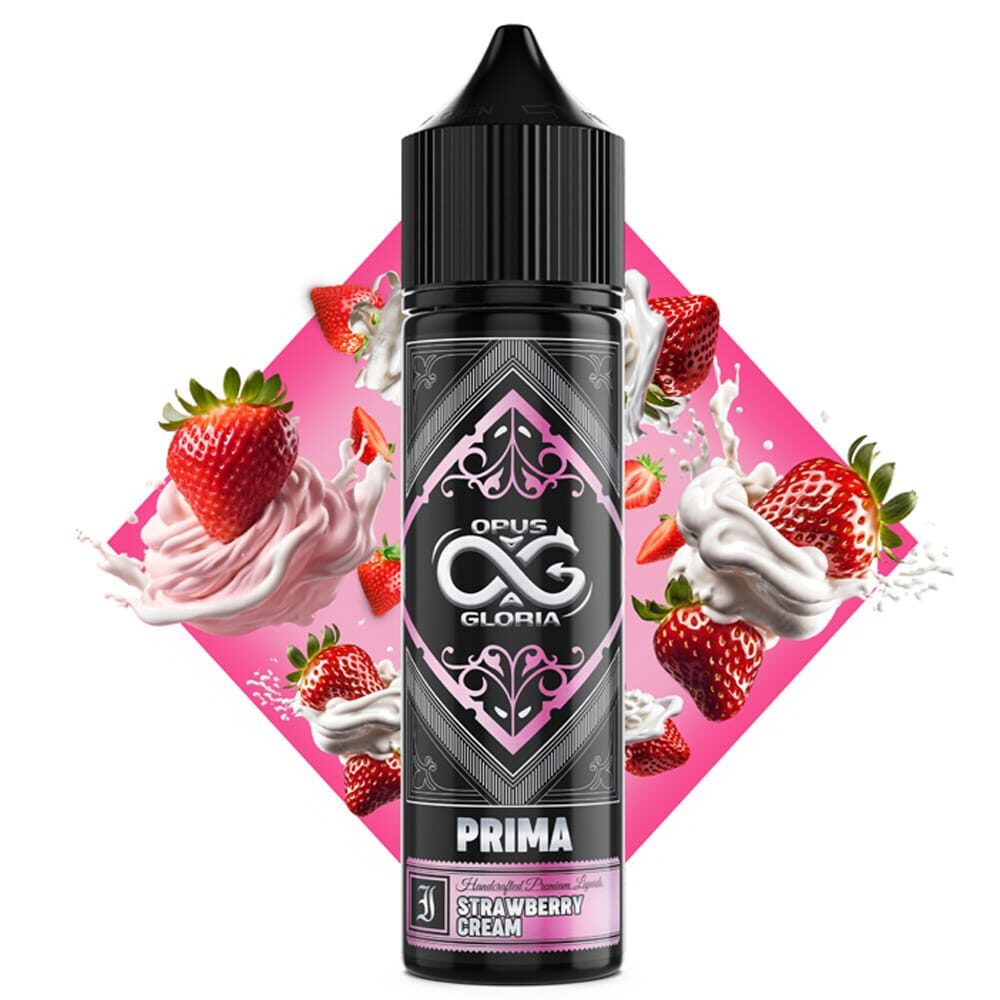 Opus Gloria Prima Strawberry Cream (20ml to 60ml) – Φρέσκες και γλυκιές φράουλες σε συνδυασμό με μία κρεμώδη υφή δημιουργούν ένα μείγμα γεύσεων που θα σας ταξιδέψει. Η ζουμερή φράουλα συναντά τη βελούδινη χτυπημένη κρέμα σαντιγί, το αποτέλεσμα; Μια λαχταριστή ροζ κρέμα που θα σας προσφέρει μια έντονη και εκλεπτυσμένη ατμιστική εμπειρία.